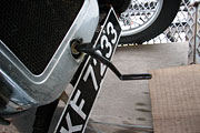 シルバーの直線的なボディフォルムが無骨な印象のセダンモデルは、4人乗りでエンジンやメーターなどの基本パーツのみを搭載している(写真はオープンタイプ)。ボディの組み立てから開始できるこのモデルはコクピットを自分好みに替えることも可能。愛着の湧く1台になることお墨付きだ。